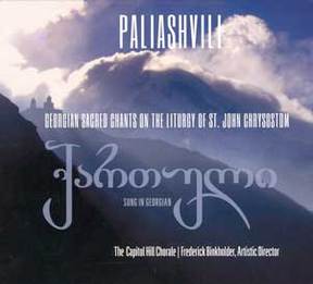 In a remarkable sequence of events, the score of the Liturgy of St John Chrysostom by a Roman Catholic composer from the country of Georgia, Zakaria Paliashvili (1871-1933), based on chant melodies close to a thousand years old, supplied by a Russian-American researcher to an American choir, is heard for the first time sung in Georgian on this premiere recording!*) Unlike the more common Georgian liturgical singing, which is sung in three parts by men’s voices, these arrangements were composed for six- to seven-part mixed choir, no doubt under the influences of the composers of the “new Russian choral school” of the early 20th century—Taneyev and Ippolitov-Ivanov, among others— under whom Paliashvili studied. The Capitol Hill Chorale, a non-professional chorus of 100 voices, does a fine job of negotiating the complexities of the Georgian language (which is unlike any European language), and the unusual modalities of Paliashvili’s chant arrangements. The recording makes no attempt to recreate any of the liturgical dialogues (litanies and other responses) that characterize Orthodox services, which would have undoubtedly complicated the project even further; consequently, they sing a string of “Lord, have mercy” responses simply one after another, as they appear in the score. Nevertheless, the majesty of the Georgian chant and the beauty of Paliashvili’s score emerge fully for the entire world to hear for the first time, and for that the Capitol Hill Chorale is to be thanked. The attractive booklet contains an introductory essay by Chorale founder Parker Jayne, and texts in Georgian script, phonetics, and English translation. This is unique disc, not be be missed! Recommended for all lovers of Orthodox liturgical singing.--V.M.