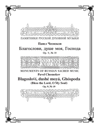 In this arrangement Chesnokov uses a well-known Russian “Greek” Chant melody for this psalm, also used by Rachmaninoff in his All-Night Vigil, as well as by a number of other composers. The flowing melody is extremely singable, which, no doubt, accounts for its popularity among composers. The text, which opens every Orthodox vesper service, is a solemn hymn praising the wonders and majesty of God’s creation.