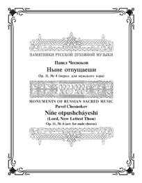 Chesnokov arranged this piece for men’s chorus from his own original version for mixed voices. In this setting of the Canticle of St. Symeon he skillfully weaves a contrapuntal texture from a Kievan Chant melody (mistakenly identified as “znamenny”), which was later also used by Rachmaninoff in his All-Night Vigil.
