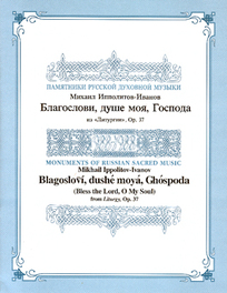 "Bless the Lord, O My Soul" (Ps. 103:1-6) is from Ippolitov-Ivanov's beautiful setting of the Divine Liturgy. The piece is a delicate musical evocation of a whispered prayer, opening tenderly and continuing in long delicate lines. (Also available in arrangements for SSA, SAB, and TTBB choirs.)