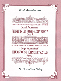 Over the past 15-20 years, Sergei Rachmaninoff's All-Night Vigil (a.k.a. “Vespers”), opus 37, and especially the 6th movement, “Rejoice, O Virgin,” have achieved a solid place in the repertoire of non-Russian choirs. Much lesser-known is Rachmaninoff's Liturgy of St. John Chrysostom, opus 31, which, besides being a major full-length work on its own, contains more than several eminently excerptable numbers within it. One of the most delightful of these is another hymn to the Virgin Mary-“It is truly fitting,” which, like its Marian counterpart from the Vespers, begins subtly and gently, but then builds to one of the most glorious climaxes within the choral miniature genre.