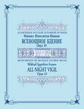 Ippolitov-Ivanov was one of the most respected choral composers and musical pedagogues of his time. He was a student of Rimsky-Korsakov and a teacher of Chesnokov. His All-Night Vigil, composed in 1905, stands as a major link between Tchaikovsky's and Rachmaninoff's settings. Composed in a clear and elegant harmonic style, this work builds upon Tchaikovsky's elegant and rich choral writing, but is less demanding than Rachmaninoff's.