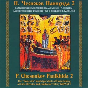 Once in a while a recording comes along in which all the elements blend together in perfect harmony: the composer provides an inspired musical setting for the liturgical text, the singing of the choir is tuneful and imbued with reverence, the exclamations of the clergy are perfectly pitched and tastefully executed. The result can be termed truly "liturgical"--for the liturgy is all about diverse groups of people working in a spirit of perfect harmony to produce transcendent beauty, reflective of the harmony and beauty of the Heavenly Kingdom. Exactly such a result is achieved on this recording of Chesnokov's Panihida by the "Domestik" Choir of Ekaterinburg, whose work is dedicated to the memory of Czar Nicholas II and the Royal Family, martyred in that city. Certainly this recording stands as a fitting memorial. Titles and notes are in Russian and English.--V. M.