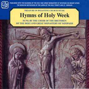 This is a treasure-trove for all lovers of Byzantine chant in its traditional Athonite form. The selections from Holy Week are sung according to the manuscript compositions written by Vatopaidi composers Matthaios Ephesios (+1849) and Romanos of Vatopaidi (1889-1966), reflecting the vast melodic richness of the calophonic monastic chant: the Doxastichon of the Aposticha for Holy Friday Vespers lasts twenty-two-and-a-half minutes; other hymns last seven, eight, nine, and ten minutes apiece. CD contains title listings and introductory articles in Russian and English, but no text translations.
