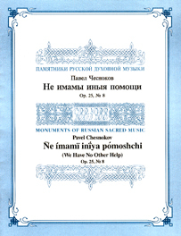 It is for good reason that Chesnokov's "Salvation is created" and "Let Thy Good Spirit," both from his opus 25, are perennial favorites with choirs. They are harmonically expressive, richly scored, and employ colorful contrasts between the male and treble groups of voices. "We Have No Other Help" is cut from the same choral cloth as the other two works, but it is practically unknown, both in Russia and elsewhere, and would have to remained so if it were not for our friend and colleague Ken Fulton from LSU, who commissioned an edition of it and proceeded to perform it as an All-State piece in at least half a dozen southern states. Imagine a Russian choral piece that's better known in Texas than in Moscow!