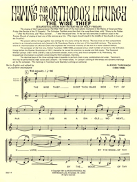 This hymn, sung at the Orthodox Matins of Great and Holy Friday, is one of the most solemn moments in the service, recalling the last-minute promise of paradise made by the crucified Christ to the thief on his right hand. In the course of the service, the hymn is prescribed to be sung three times. Accordingly, this edition contains three separate settings of the text: SSA Trio by Turenkov, TTB Trio by Archpriest M. Lisitsyn, and SATB by Staritsky.