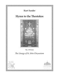 This hymn to the Virgin Mary exemplifies the serene and luminous choral writing that permeates Kurt Sander's Divine Liturgy of St John Chrysostom, the first complete setting of the Orthodox Liturgy in English composed in the Slavic choral idiom. Commissioned in 2016 by the Patriarch Tikhon Russian-American Music Institute (PaTRAM), it follows in the great tradition similar works by Tchaikovsky, Gretchaninoff, and Rachmaninoff. At the same time, Sander's masterful score breaks new ground: It employs a richness of modal harmony and sonority that places it definitively in the 21st century; it is built upon musical themes that are recognizably "American," yet have an objective and universal quality to them; and it utilizes those distinctive motives to achieve a degree of thematic unity never previously heard in an Orthodox sacred choral work. In short, this work is a first-rate example of Orthodox liturgical creativity in the present day—achieving a remarkable blend of the traditional and the contemporary.