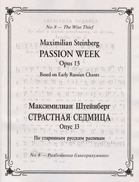 Maximilian Steinberg based every movement of his Passion Week on pre-existing chants, except for this one, for which he composed his own, chant-like melody. As in every movement of his monumental work, composed in the early 1920s, a great mystery is musically expressed: the last-minute promise of paradise made by Christ on the cross to the thief on his right hand. (The full score of Steinberg’s Passion Week is available from Musica Russica, cat. No. St-PW.)